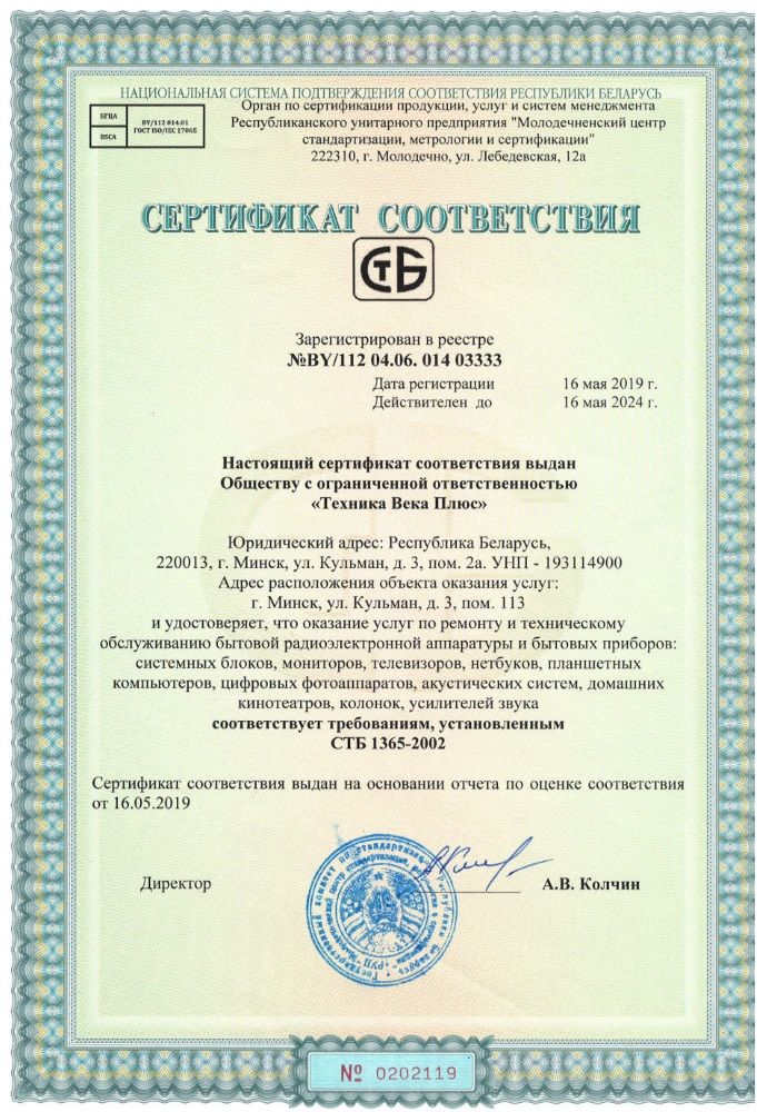 Общество с ограниченной ответственностью «Техника Века Плюс» УНП 193114900